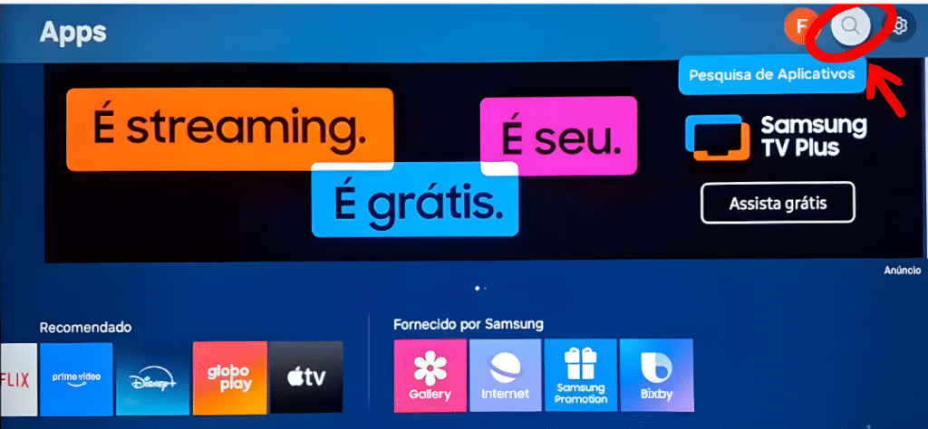 Na tela inicial da Smart TV, entre na LG Content Store ou Samsung Apps.